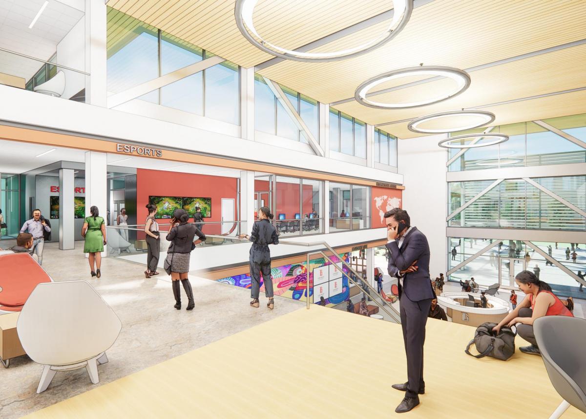 Project includes the demolition of existing Building E and all associated site utilities. The construction of new Building E, a three-story building with all the operational systems and associated site work, will consist of new site upgrades including utility improvements, hardscape, landscaping, and irrigation systems. The College Center will house food service, dining, student gathering/lounge space, conference/meeting rooms. Programs included will consist of Student Government, Student Life, International Center, Social Justice & Intercultural Center, Basic Needs Center.