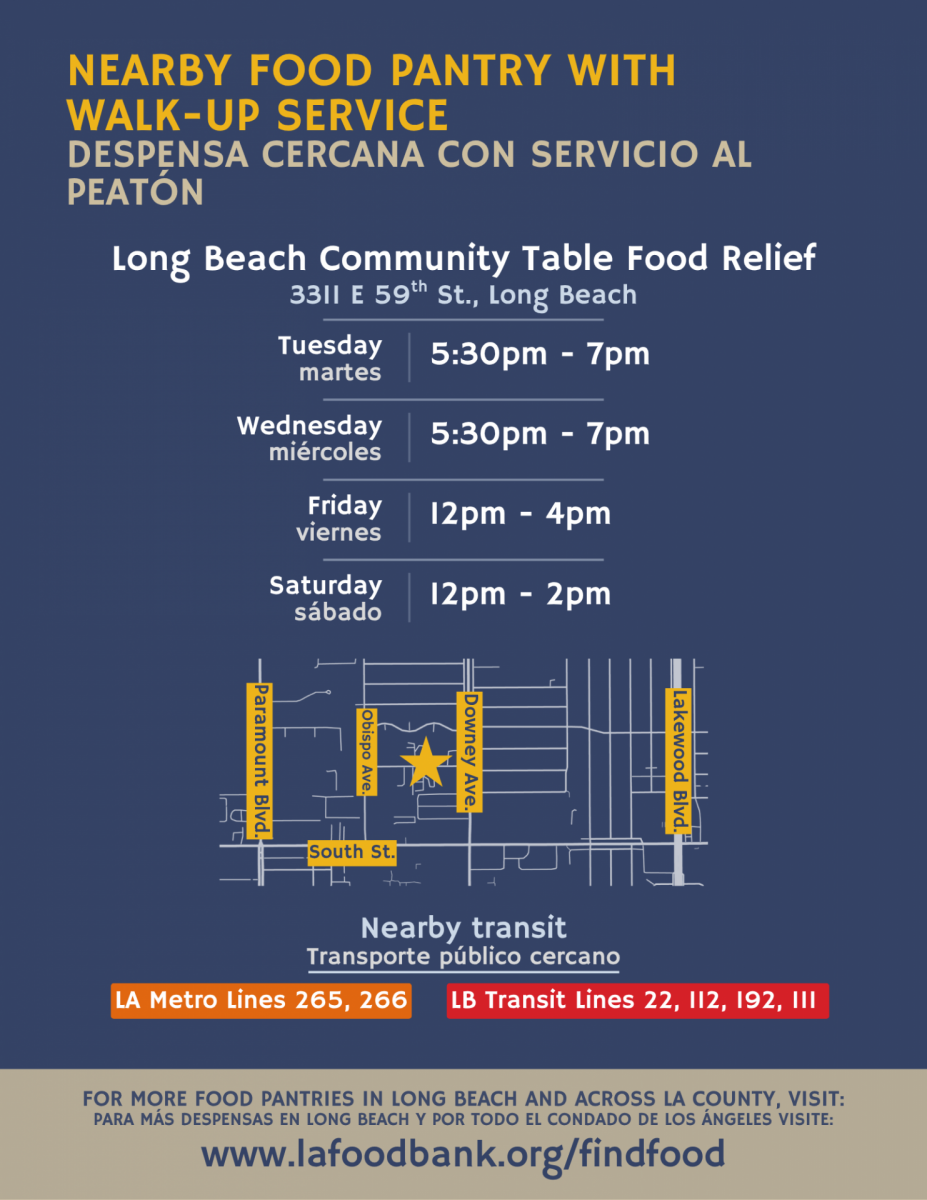 - Long Beach Community Table: 3311 E 59th St, Long Beach, CA 90805 (562) 548-0774