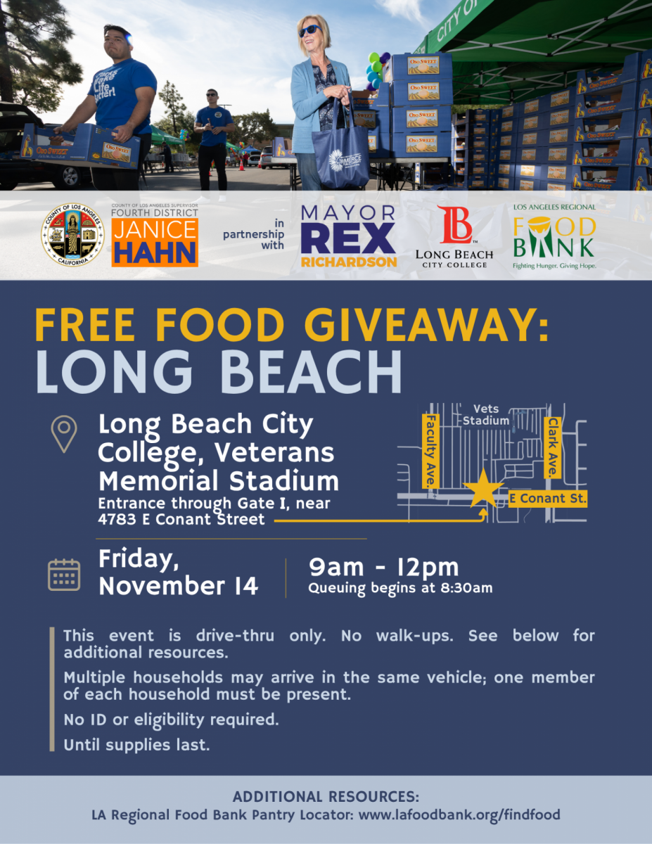 - Location: Long Beach Poly – Food Pantry Pick-Up Sites, 1600 Atlantic Avenue, Long Beach, CA 90813