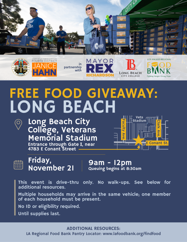 Note: For a nearby food pantry offering walk-up services, visit Long Beach Community Table – Food Bank: Click here for the flyer
