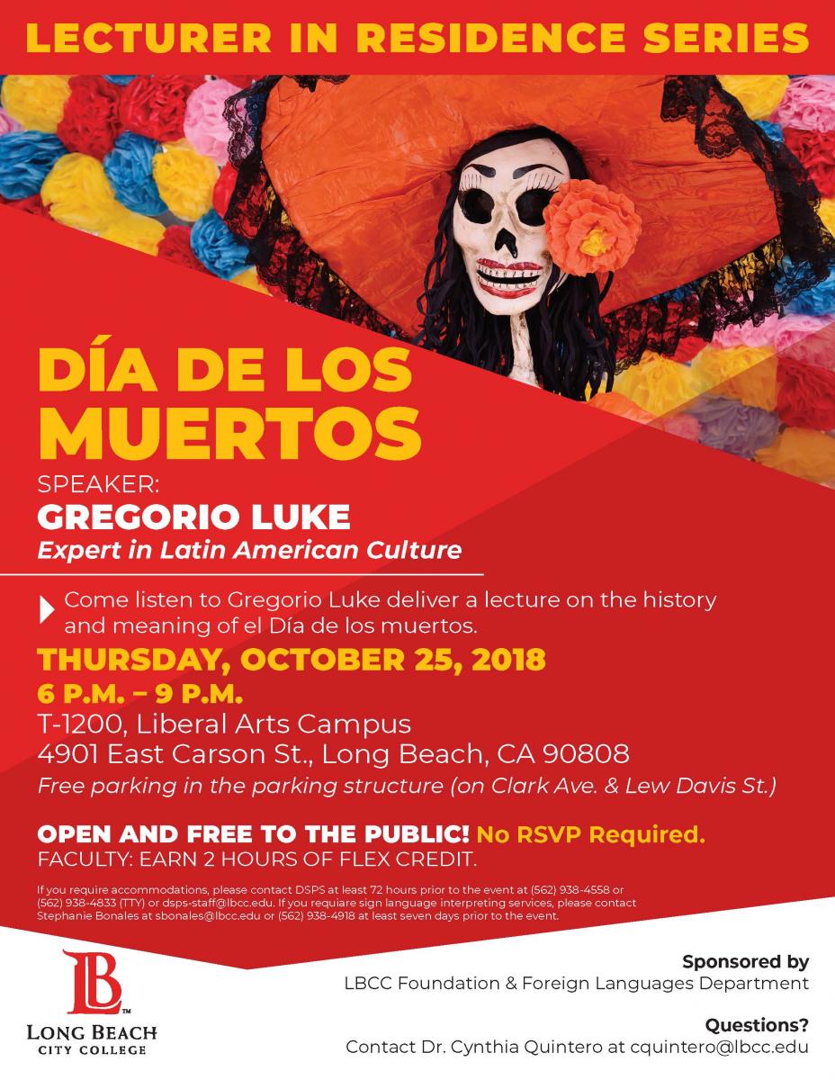 Come listen to Gregorio Luke deliver a lecture on the history and meaning of el Día de los muertos