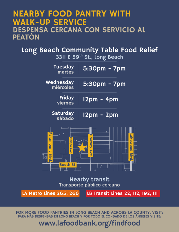 Note: For a nearby food pantry offering walk-up services, visit Long Beach Community Table – Food Bank: Click here for the flyer